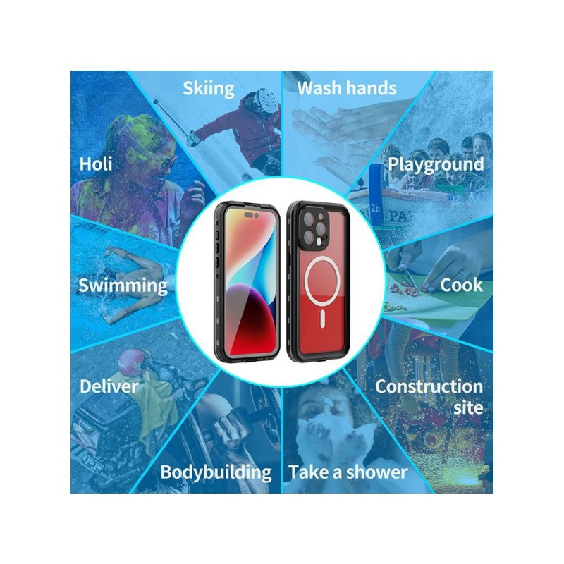 Ümbrisel on IP68 veekindluse sertifikaat, mis tähendab, et see on tolmukindel ja talub vee alla kastmist, tavaliselt kuni 1,5 meetri sügavusel kuni 30 minutit*. See on ideaalne lahendus telefoni kaitsmiseks karmides tingimustes, nagu vihm, muda, liiv või lühiajaline kokkupuude veega.