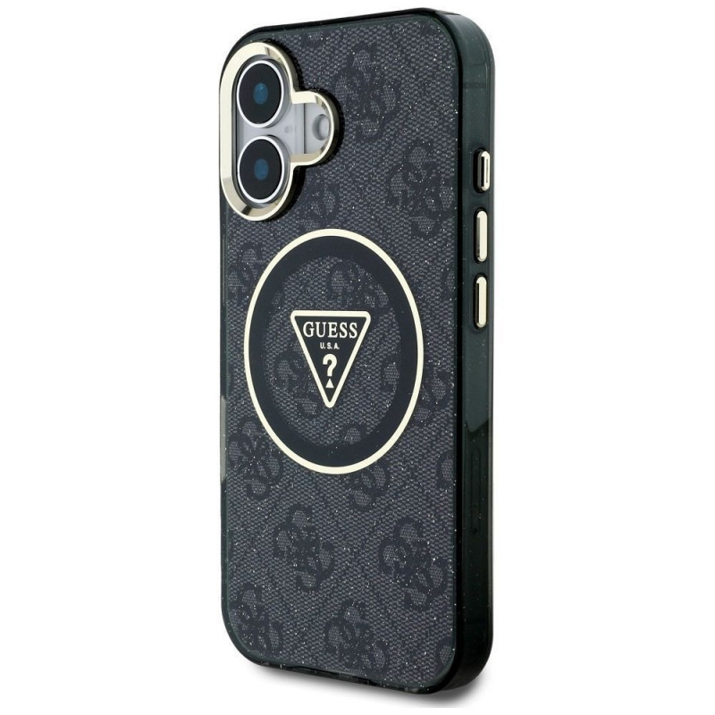 GUESS case for IPHONE 16 compatible with MagSafe GUHMP16SHG4PRTGK (IML Metal Glitter 4G Circle Trian