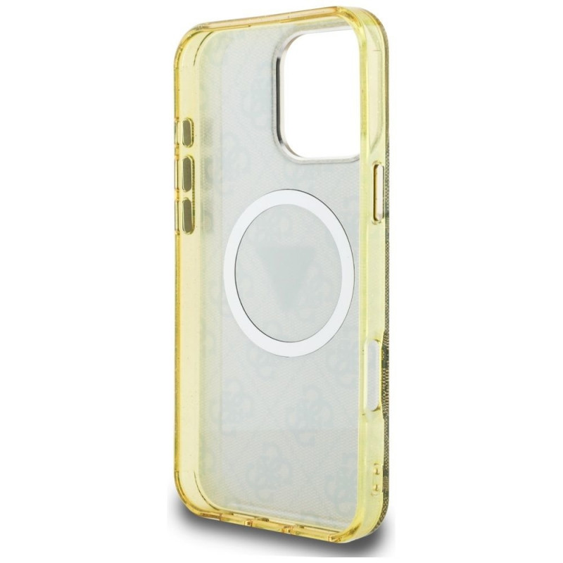 Guess IML Metal Glitter 4G Circle Triangle MagSafe Case for iPhone 16 Pro - Brown