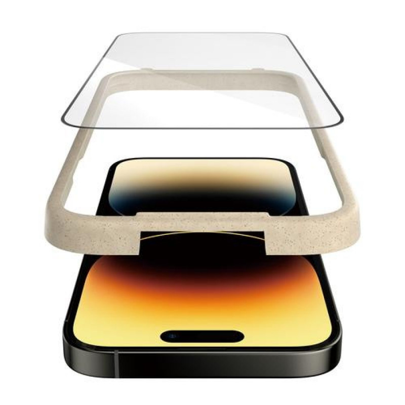 Protect your phone from the hazards of everyday life with a PanzerGlass® screen protector. Accidental bumps against sharp-edged dangers in your pocket or crushing falls onto stone-hard pavements are no match for this scratch and shock-resistant screen protector, which provides high-level drop protection. It even has a smudge-free coating with antibacterial effect that reduces traces of fingerprints and kills up to 99.99% of all common surface bacteria.<br><br>The screen protector comes with an EasyAligner that makes installation so simple you can do it perfectly on the first attempt… even if you’re all thumbs. And once it’s installed, you’ll never again fear the sight of your phone tumbling to the ground. This may not happen, but if it does, you’ll regret not having clicked “add to cart”.<br><br>The Ultra-Wide Fit screen protector covers the entire front surface of your phone, while still leaving room for a case. It provides a complete and crystal-clear view of your screen and comes in FSC™-certified packaging that can be recycledPanzerGlass ® Screen Protector iPhone 14 Pro | Ultra-Wide Fit w. EasyAligner. Brand compatibility: Apple, Compatibility: Apple - iPhone 14 Pro. Dry application. Protection features: Scratch resistant, Shock resistant, Anti-bacterial. Material: Tempered glass, Polyethylene terephthalate (PET), Silicone, Product colour: Transparent. Quantity per pack: 1 pc(s)