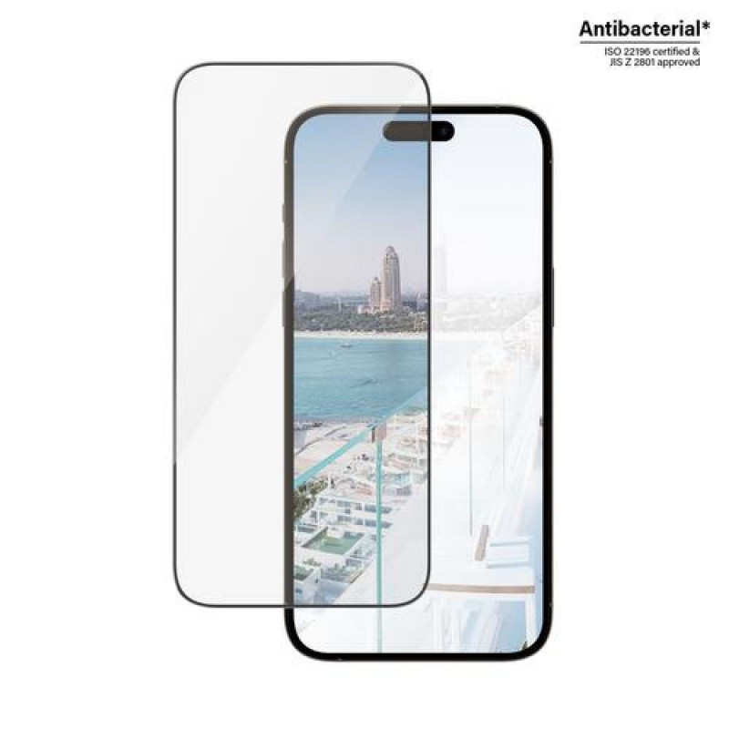 Sun and beach are a great combination. Sun and screen, not so much. Until now that is. With the PanzerGlass® Anti-reflective screen protector reducing reflections from the sun and artificial lighting you can always see what’s on your screen, even when relaxing on the beach, chilling in the park or sipping coffee on a sunlit terrace.<br><br>Accidental bumps against sharp-edged dangers in your pocket or crushing falls onto stone-hard pavements are also no match for this scratch and shock-resistant screen protector, which provides high-level drop protection. It even has a smudge-free coating with antibacterial effect that reduces traces of fingerprints and kills up to 99.99% of all common surface bacteria.<br><br>The screen protector comes with an EasyAligner that makes installation so simple you can do it perfectly on the first attempt… even if you’re all thumbs. And once it’s installed, you’ll never again fear the sight of your phone tumbling to the ground. This may not happen, but if it does, you’ll regret not having clicked “add to cart”.<br><br>The Ultra-Wide Fit screen protector covers the entire front surface of your phone, while still leaving room for a case. It provides a complete and crystal-clear view of your screen and comes in FSC™-certified packaging that can be recycledPanzerGlass ® Anti-Reflective Screen Protector iPhone 14 Pro Max | Ultra-Wide Fit w. EasyAligner. Brand compatibility: Apple, Compatibility: Apple - iPhone 14 Pro Max. Dry application. Protection features: Scratch resistant, Shock resistant, Anti-bacterial. Material: Tempered glass, Polyethylene terephthalate (PET), Silicone, Product colour: Transparent. Quantity per pack: 1 pc(s)