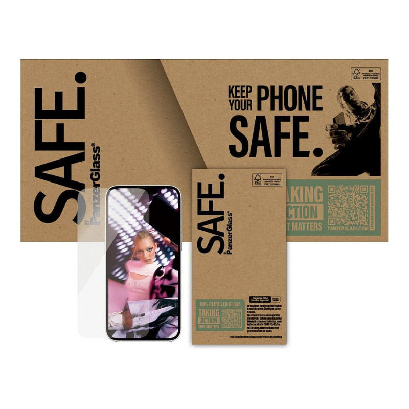 PanzerGlass SAFE. by ® ekraanikaitse iPhone New 16e 2026 | 16e | 14 | 13 | 13 Pro | Ultra-Wide Fit Brändi ühilduvus: Apple Ühilduvus: Apple – iPhone 13, Apple – iPhone 13 Pro, Apple – iPhone 14, Apple – iPhone 16e, Apple – iPhone 17e Kuiv paigaldus Kaitsefunktsioon: kriimustuskindel, põrutuskindel Materjal: karastatud klaas, polüetüleentereftalaat, silikoon Toote värvus: läbipaistev Kogus pakendis: 1 tk