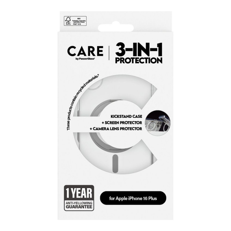 PanzerGlass CARE™ by ® 3-in-1 keraamiline komplekt iPhone 16 Plus. Korpuse tüüp: Kate, brändi ühilduvus: Apple, ühilduvus: Apple – iPhone 16 Plus, toote värvus: läbipaistev