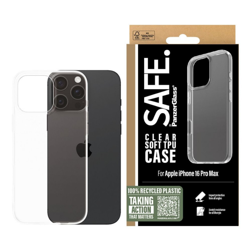 PanzerGlass SAFE. by ® TPU ümbris läbipaistev iPhone 16 Pro Maxile Korpuse tüüp: Kate Brändi ühilduvus: Apple Ühilduvus: Apple – iPhone 16 Pro Max Toote värv: Läbipaistev