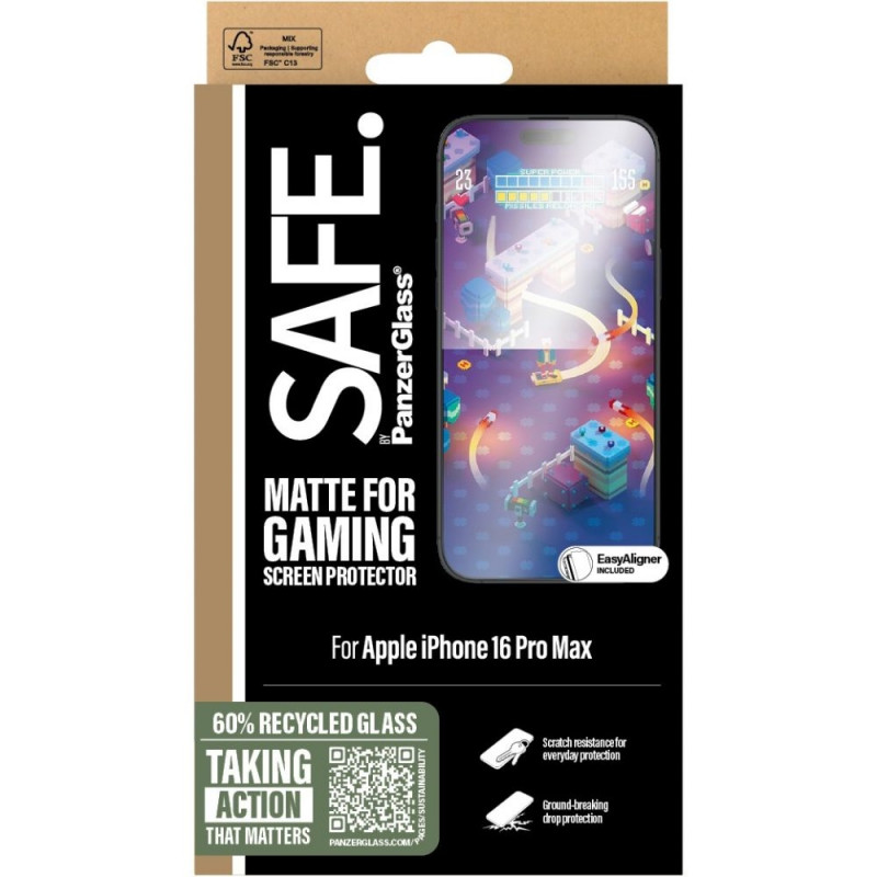 PanzerGlass SAFE. by ® Gaming ekraanikaitse iPhone 16 Pro Max | Ultra-Wide Fit. Brändi ühilduvus: Apple, Ühilduvus: Apple – iPhone 16 Pro Max. Kuiv paigaldus. Kaitsefunktsioon: kriimustuskindel, põrutuskindel. Materjal: karastatud klaas, polüetüleentereftalaat, silikoon, Toote värvus: läbipaistev. Kogus pakendis: 1 tükk(i).