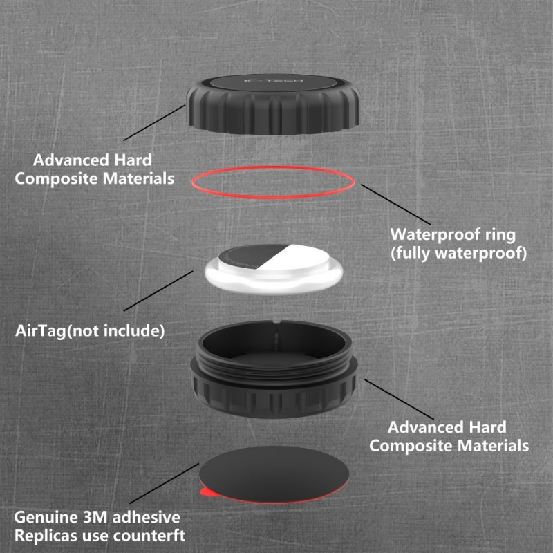 Etui on varustatud patenteeritud lukustusmehhanismiga – kaane avamiseks tuleb seda pöörata, mis hoiab ära juhusliku avanemise. Lisaks on toode varustatud tugeva 3M teibiga, mis võimaldab ümbrise kindlalt kinnitada erinevatele pindadele – jalgrattale, droonile, autole, kohvrile või muudele väärtuslikele esemetele.