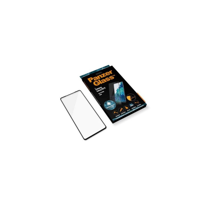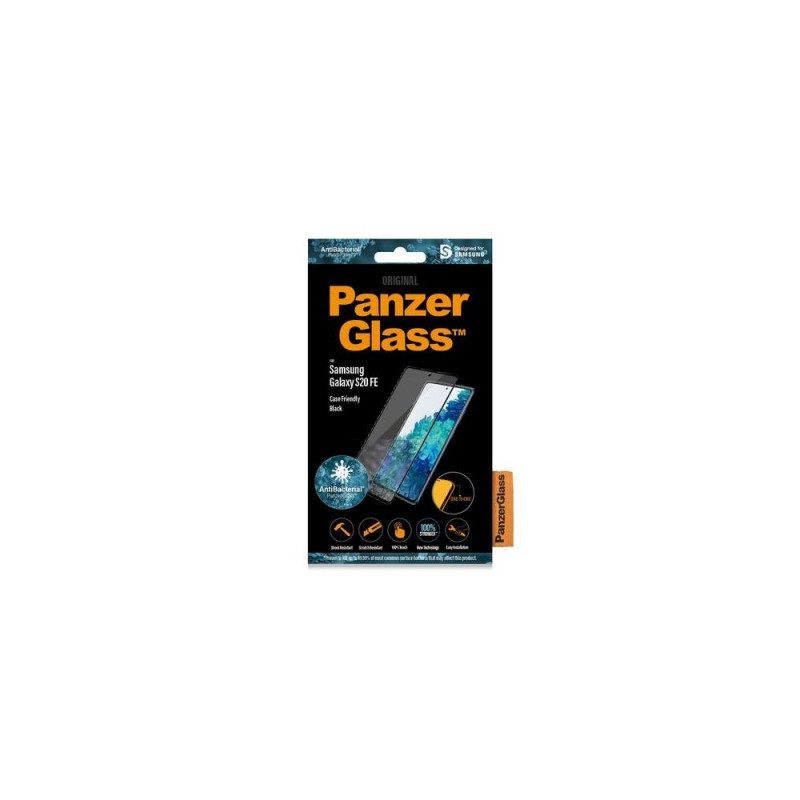 Protect your phone from the hazards of everyday life with PanzerGlass®. Accidental bumps against sharp-edged dangers in your pocket or crushing falls onto stone-hard pavements are no match for this scratch and shock-resistant screen protector. It even has a smudge-free coating with antibacterial effect that reduces traces of fingerprints and kills up to 99.99% of all common surface bacteria.<br><br>The Edge-to-Edge case-friendly fit offers full screen coverage and is designed to work with most cases. It is easy to apply and once installed, you’ll never again fear the sight of your phone tumbling to the ground. This may never happen, but if it does, you’ll regret not having clicked “add to cart”.PanzerGlass ® Screen Protector Samsung Galaxy S20 FE. Brand compatibility: Samsung, Compatibility: Samsung - Galaxy S20 FE. Dry application. Protection features: Scratch resistant, Shock resistant, Anti-bacterial. Material: Tempered glass, Polyethylene terephthalate (PET), Silicone, Product colour: Transparent. Quantity per pack: 1 pc(s)