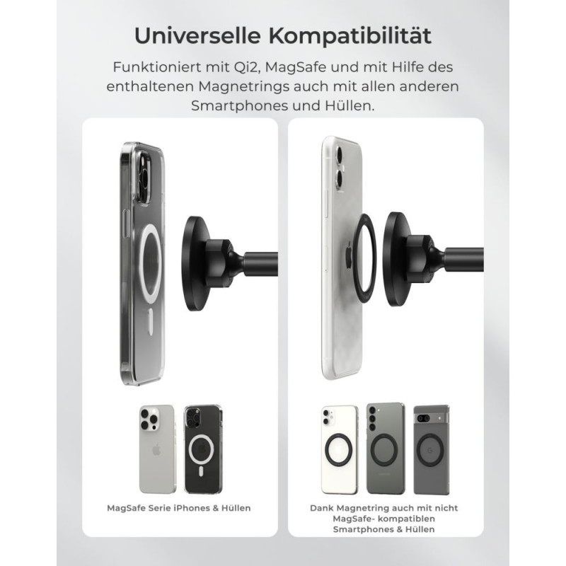 - Ühildub MagSafe iPhone’ide ja teiste nutitelefonidega kaasasoleva rõngasadapteri abil