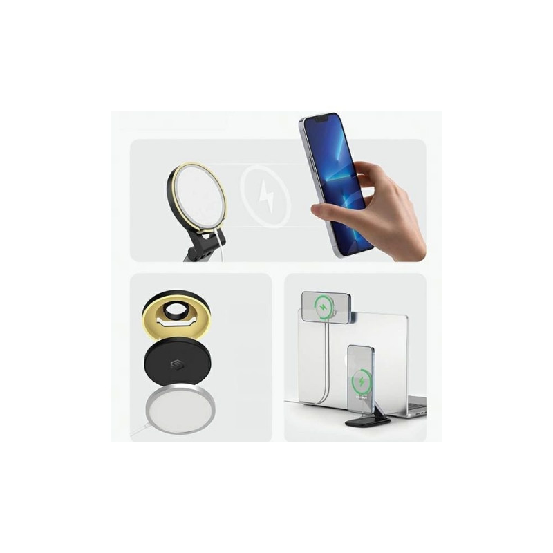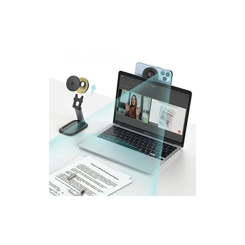 SODI BM 310 magnetiline alus iPhone 15/14/13/12 seeria jaoks, ühilduv Apple MagSafe juhtmevaba laadijaga. Alusel on kokkupandav ja reguleeritav kaamerakinnitus. Magnetiline telefonihoidik on eemaldatav aluse küljest ning selle saab kinnitada otse sülearvutile.