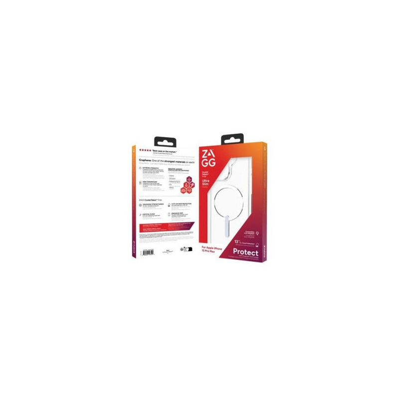 The transparent Crystal Palace Snap case is a consistent favourite because it shows off your phone while providing amazing drop protection. And now we’ve strengthened it with graphene, one of the strongest materials on earth. It’s thin, flexible, and heat conducive, making it ideal for unbeatable case protection. But that’s not all. This MagSafe compatible case made with 74% recycled content, so you can feel good about your protection purchase.ZAGG Cases Crystal Palace Snap Apple iPhone 15 Pro Max Clear EN/FR. Case type: Cover, Brand compatibility: Apple, Compatibility: iPhone 15 Pro Max, Maximum screen size: 17 cm (6.7"), Surface coloration: Monochromatic, Product colour: Transparent