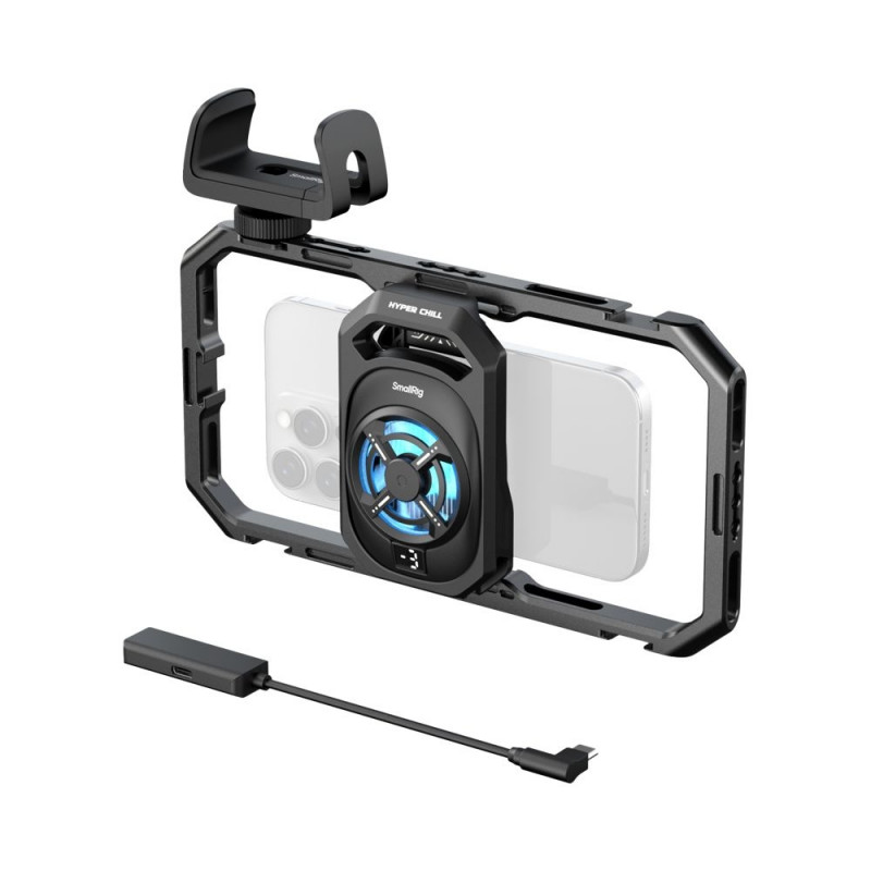 SmallRig Universal Hyper Chill Cooling Phone Cage 5275 is an all-in-one solution designed for mobile content creators requiring extended recording and livestreaming capabilities. The package includes a universal active-cooling phone cage, a 2-in-1 USB-C audio and power adapter, and a power bank holderOsta kohe, viimased eksemplarid laos!