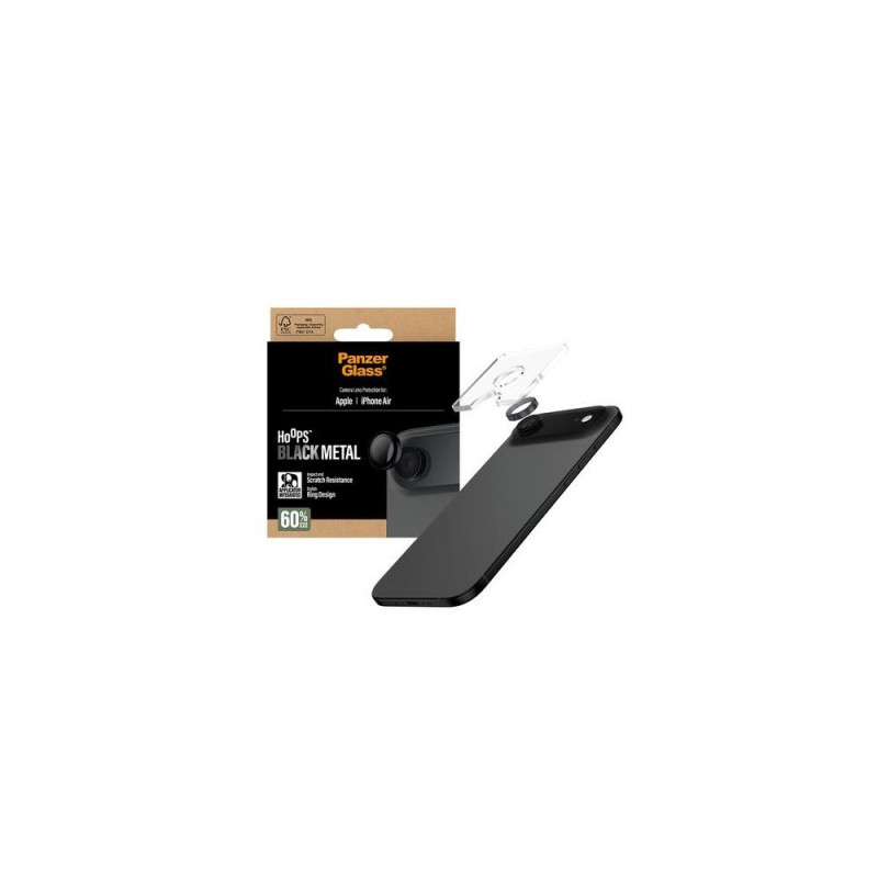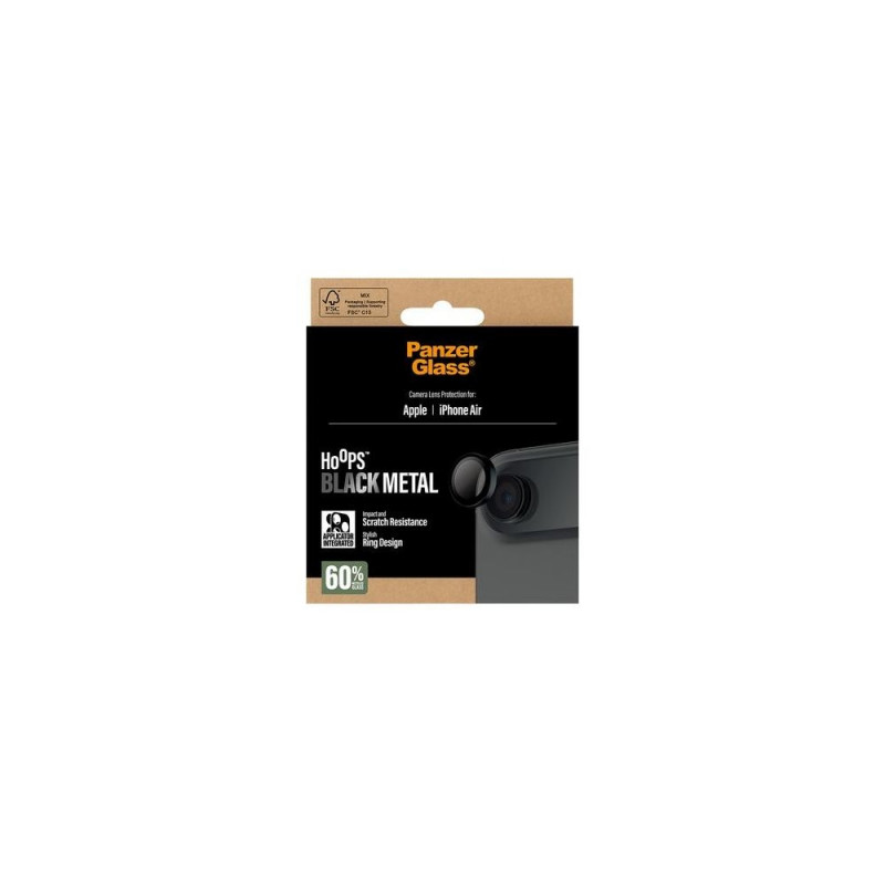 No ”Oops!” with Hoops! The PanzerGlass® Hoops Camera Lens Protector keeps your camera lenses safe from accidental drops on stone-hard floors, bumps against sharp corners, and the screeching kiss of keys in your pocket. The slim profile optic rings are equipped with scratch-and shock-resistant glass and a metal frame that protect your lenses as well as looking great. And if you’re worried about image distortion, you can rest easy: Hoops don’t affect the clarity of your lenses or the quality of your photos – they just give you a bit more peace of mind. The optic rings are designed for easy application and perfect fit. They are equipped with a silicone adhesive along the edges and come with an easy-to-use applicator that makes installation so simple that most people can do it on the first try! And remember: Once Hoops are installed, you’ll never again fear the sight of your phone tumbling to the ground camera first. This may not happen, but if it does, you’ll regret not having clicked “add to cart”. Hoops protect and prolong the lifetime of your phone so that one day you can pass it on to someone else who will love it just as much as you do. It’s the new circle of phone life. By extending the lifespan of our devices, we postpone the need to produce new devices. This is one way of working toward a more sustainable future. And to top it all off, Hoops – of course, comes in a recyclable FSC™-certified box.PanzerGlass ® Hoops® Camera Lens Protector Black iPhone Air. Brand compatibility: Apple, Compatibility: Apple - iPhone Air. Dry application. Protection features: Scratch resistant, Shock resistant. Material: Tempered glass, Silicone, Product colour: Black. Quantity per pack: 1 pc(s)
