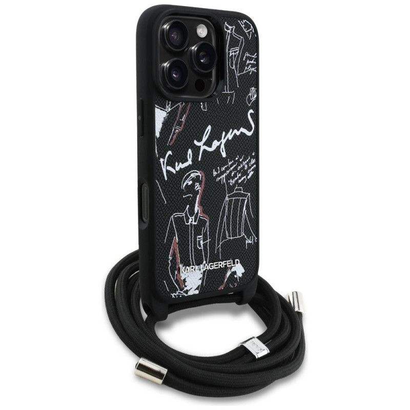 Karl Lagerfeld Crossbody Grained Pattern & Logo Case for iPhone 16 Pro - Black