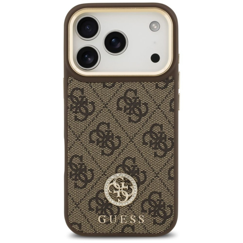 Guess 4G Strass logo ja suur rihm metallnupud MagSafe ümbris iPhone 17 Pro pruun