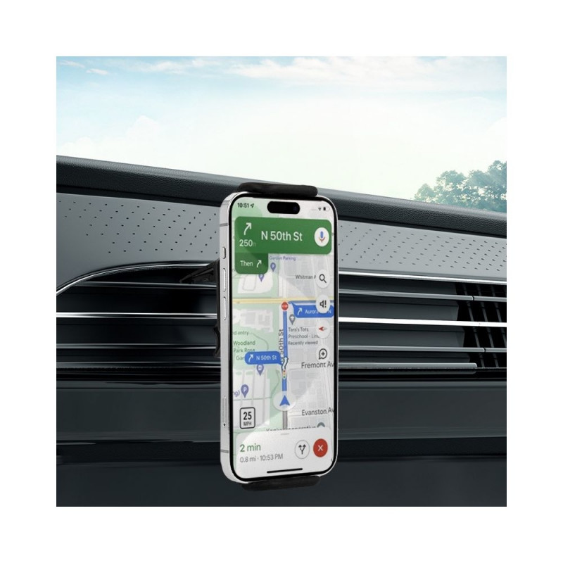 - Kinnitusvõimalused: tuuleklaas, armatuurlaud või õhuventilaator – kaasasoleva lisatarvikuga saab hoidiku paigaldada õhuventilaatorile või tuuleklaasile ja armatuurlauale.