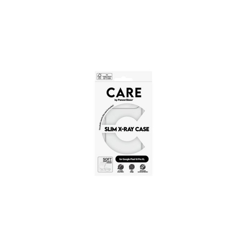 A clear choice for protection and style. Let your phone’s true color shine through. With a soft, slim design, this protective case is durable inside and out. And with its smooth grip it looks as good as it feels. Drop-tested at 1.2 meters, this case is designed to endure everyday falls and scratches. The X-Ray case, made from recycled plastic, is designed for wireless charging and enhanced camera protection. <br><br>DARE TO CARE<br><br>CARE is a playful and protective international tech and lifestyle brand featuring a range of products created with the highest quality materials and influenced by fashion, art, and music. We care about people and the world we live in. We care about sustainability and self-expression. And we care about tech and extending its lifetime. So protect your tech in style and show the world you CARE.PanzerGlass CARE by ® Fashionable Case Transparent X-Ray Soft Basic Google Pixel 10 Pro XL. Case type: Cover, Brand compatibility: Google, Compatibility: Google - New Pixel 9 Pro XL, Product colour: Transparent