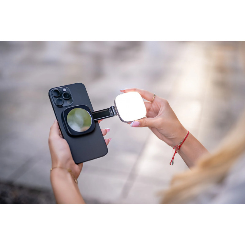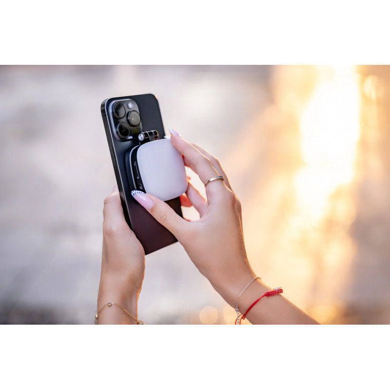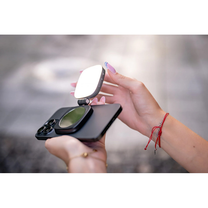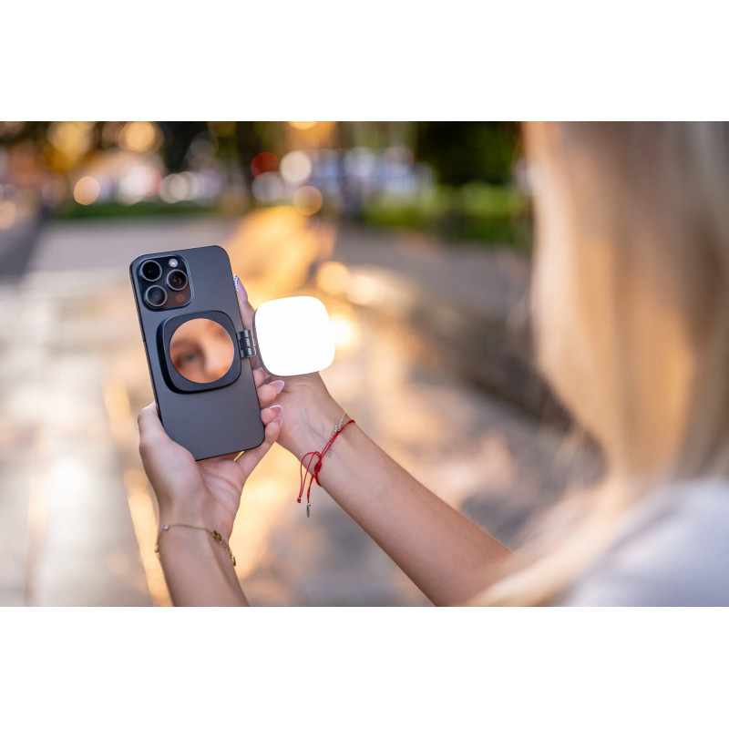 Kvaliteetne täitevalgus sobib suurepäraselt selfide tegemiseks, videote salvestamiseks, meigi tegemiseks ja videokõnedeks. Valgustil on 5 heledustaset ja 5 värvitemperatuuri režiimi (2700–6500 K). Sellel on 360° pööratav ja kahesuunaliselt kallutatav disain. Sisseehitatud 850 mAh aku töötab kuni 90 minutit. USB-C kaudu on laadimine kiire ja mugav.