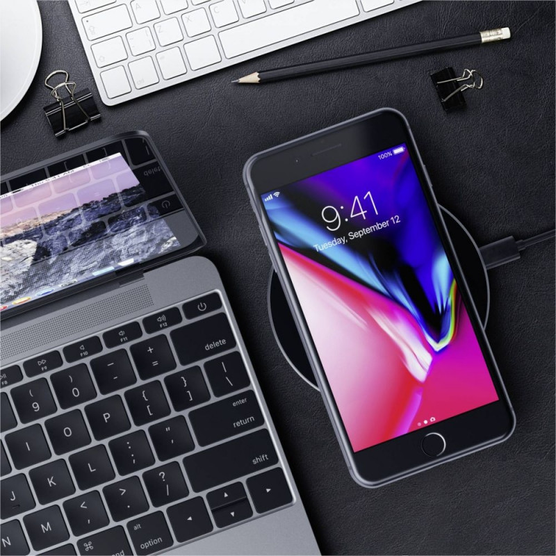 Laadimisaluse üliõhuke profiil genereerib vähem soojust, tagades tõhusama laadimise. Laadimisaluse stiilne ja kompaktne disain muudab selle täiuslikuks aksessuaariks igasse ruumi või töökohta.