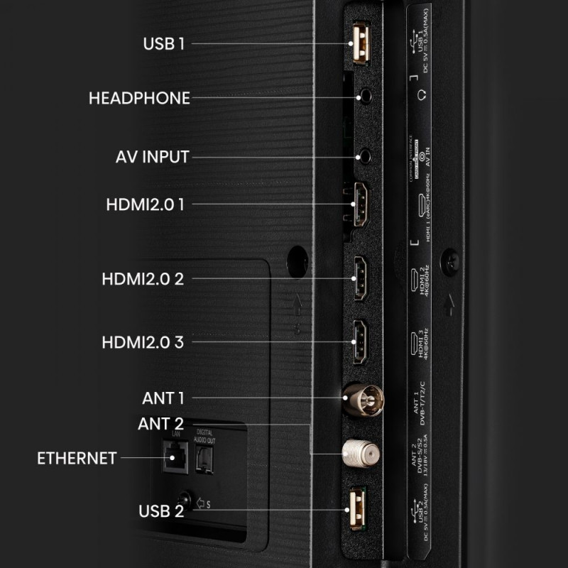 Hisense 65U6KQ. Ekraani diagonaal: 165,1 cm (65"), ekraani lahutusvõime: 3840 x 2160 pikslit, HD-tüüp: 4K Ultra HD, ekraanitehnoloogia: QNED MiniLED, ekraani kuju: lame, LED-taustvalgustuse tüüp: Mini-LED. Nutiteler. Heledus: 600 cd/m², reaktsiooniaeg: 8 ms, kontrastsussuhe: 5000:1, loomulik kuvasuhe: 16:9. Digitaalse signaali formaadisüsteem: DVB-C, DVB-S, DVB-S2, DVB-T, DVB-T2. WLAN, Ethernet/LAN. Toote värvus: must.