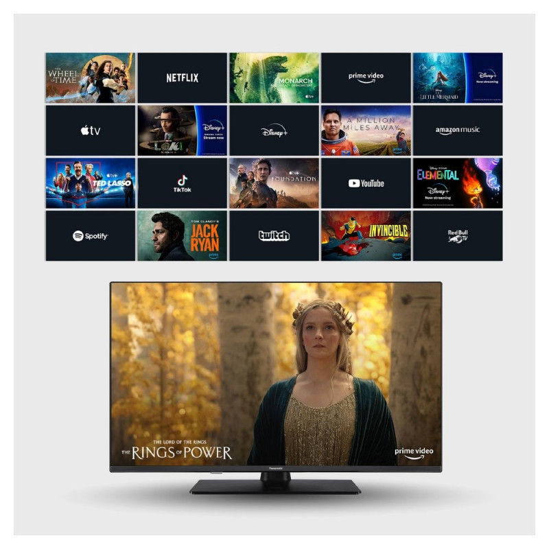 Panasonic TV-40S55AEZ. Ekraani diagonaal: 101,6 cm (40"), ekraani lahutusvõime: 1920 x 1080 pikslit, HD-tüüp: Full HD, ekraanitehnoloogia: LCD, ekraani kuju: lame. Nutiteler. Algne kuvasuhe: 16:9. Digitaalse signaali formaadisüsteem: DVB-C, DVB-S2, DVB-T, DVB-T2. Ethernet/LAN. Toote värvus: must.