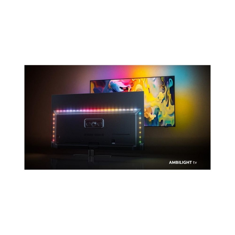 Üks selle teleri silmapaistvamaid omadusi on kolmekülgne Ambilight valgustus, mis laieneb teleri ekraanilt seintele, luues kaasahaarava ja atmosfäärse elamuse. Ambilight muudab ruumi meeleolu vastavalt ekraanil toimuvale, muutes iga vaatamisõhtu eriliseks. Teler töötab Android TV platvormil, mis võimaldab mugavat ligipääsu tuhandetele rakendustele, voogedastusteenustele ja mängudele. Sisseehitatud Google Assistant võimaldab telerit juhtida häälkäsklustega ning Chromecast funktsioon võimaldab sisu hõlpsalt nutiseadmest telerisse peegeldada.