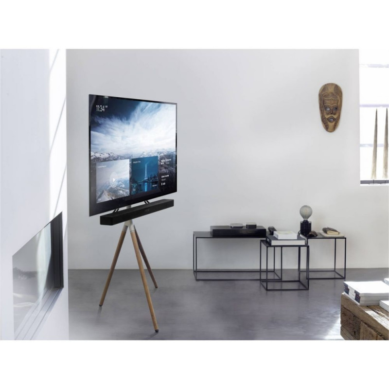 Tripod on geniaalselt lihtne paigaldada: kokkupanek toimub ilma tööriistadeta. Televiisori alus ühendab elegantsi funktsionaalse disainiga. Universaalne heliriba kinnitus on juba integreeritud.