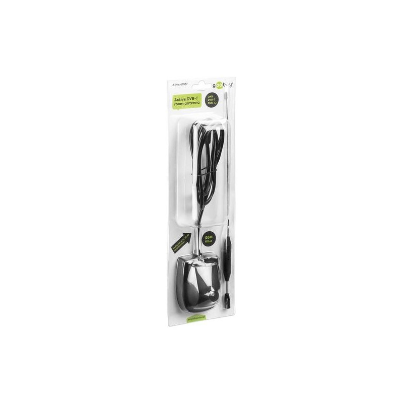 18.5 dBi/21.5 dBi antenna for receiving DVB-T/DVB-T2 HD programmesGoobay Active DVB-T2 (HD) Indoor Antenna. Placement: Indoor, Product colour: Black, Antenna type: Omni-directional. Height: 355 mm. Quantity per pack: 1 pc(s), Package type: Blister
