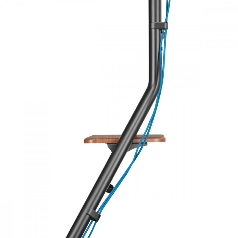 Kinnitus on valmistatud vastupidavatest materjalidest. Tugev konstruktsioon koosneb 38 mm läbimõõduga torudest, mis tagavad teie teleri ja muude seadmete stabiilsuse ja ohutuse. Kaasasolevad kaks riiulit võimaldavad hoiustada erinevaid seadmeid ja tarvikuid, maksimaalse kaaluga kuni 10 kg. Alust iseloomustab praktiline disain, väga lihtne kokkupanek ning väga lai valik telerimudeleid, mida sellele saab paigaldada. Varustatud kaablipeitmissüsteemi ja libisemisvastaste jalgadega lisastabiilsuse tagamiseks.