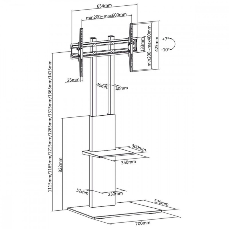 Other features | Adjustable TV height adjustment: 1115mm / 1165mm / 1215mm / 1265mm / 1315mm / 1365mm / 1415mm Adjustable TV tilt from + 7 ° to -10 ° Maximum load: TV bracket: up to 40 kg / shelf: up to 5kg Compatible with OLED / QLED / LED / LCD / Plasma Screen size: 37 |