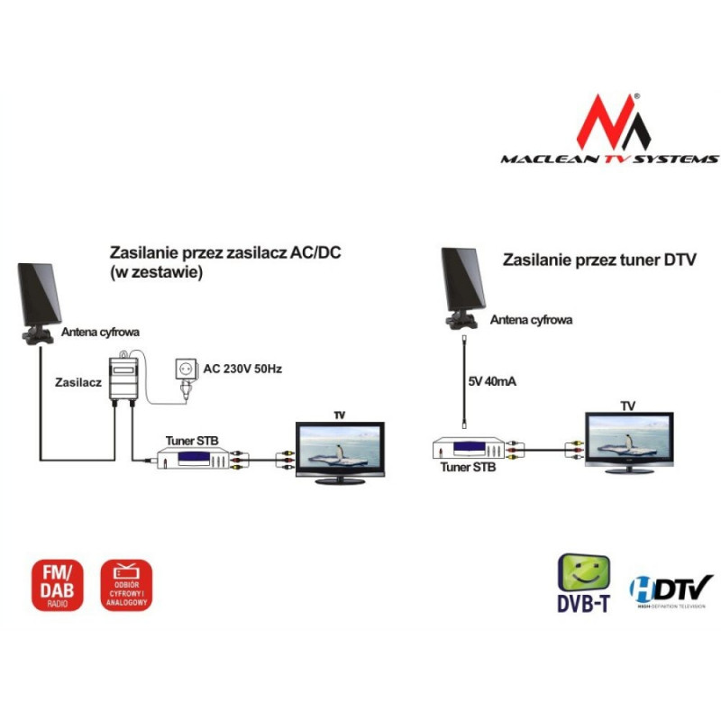 Antena TV DVB-T sise-väli Maclean MCTV-970 Must