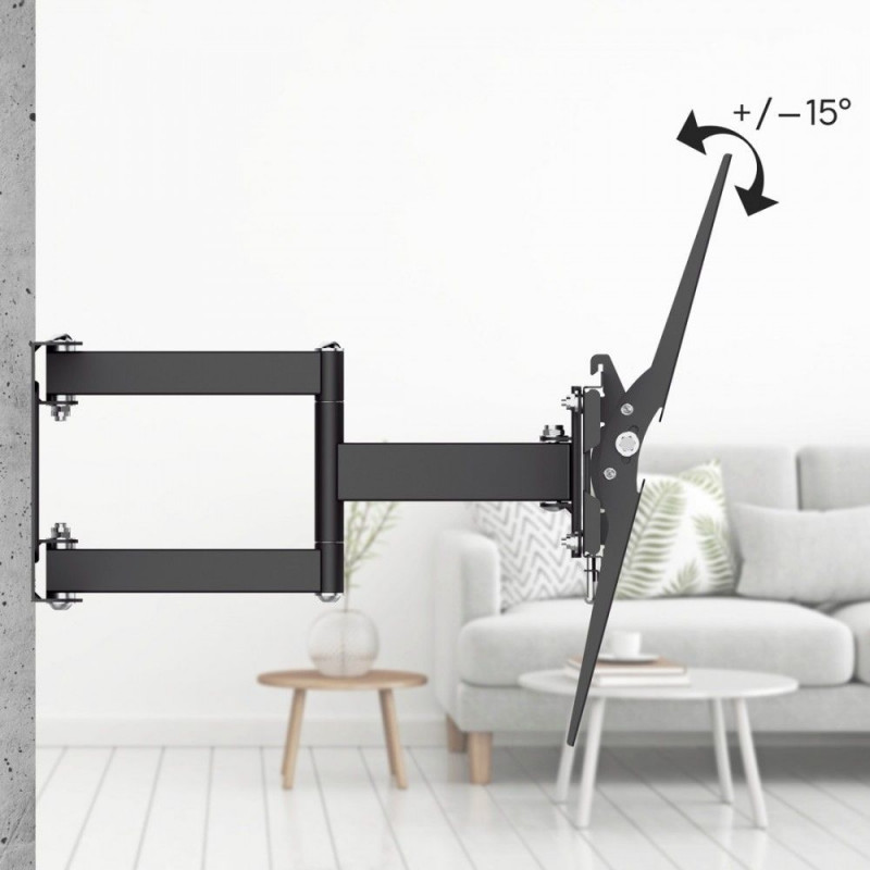 Kui teler on paigaldatud, saab seinakinnitust igal ajal täielikult reguleerida vastavalt isiklikele vaatamissoovidele. See tagab parima pildikvaliteedi igast toa punktist. Hama Fullmotion kinnitus võimaldab ekraani kallutada, külgsuunas pöörata ning reguleerida kaugust seinast.