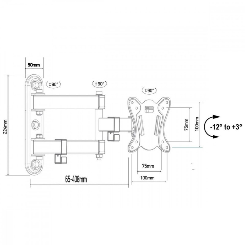 Other features | - Manufacturer: Maclean - Model: MC-417 - Maximum load: 30 kg - Adjustable tilt: -12° to +3° - Adjustable rotation: -90° to +90° - Powder coating - Color: black - Adjustable distance from wall: 65-408 mm - Designed for TVs 13" to 32" (or larger if their w |