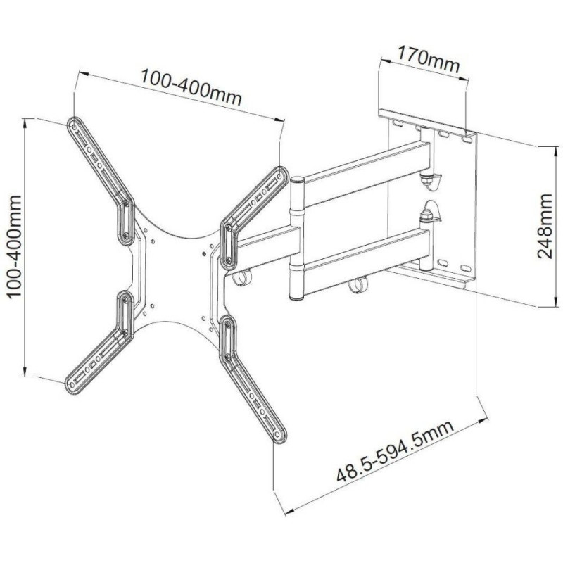Toetab 23–55-tolliseid telereid maksimaalse kaaluga kuni 45 kg ning on ühilduv VESA kinnitustega vahemikus 100 x 100 mm kuni 400 x 400 mm. Kinnitusel on kallutusnurk -2° kuni 12°, pöördenurk 180° ning komplektis on paigalduskomplekt ja juhend.
