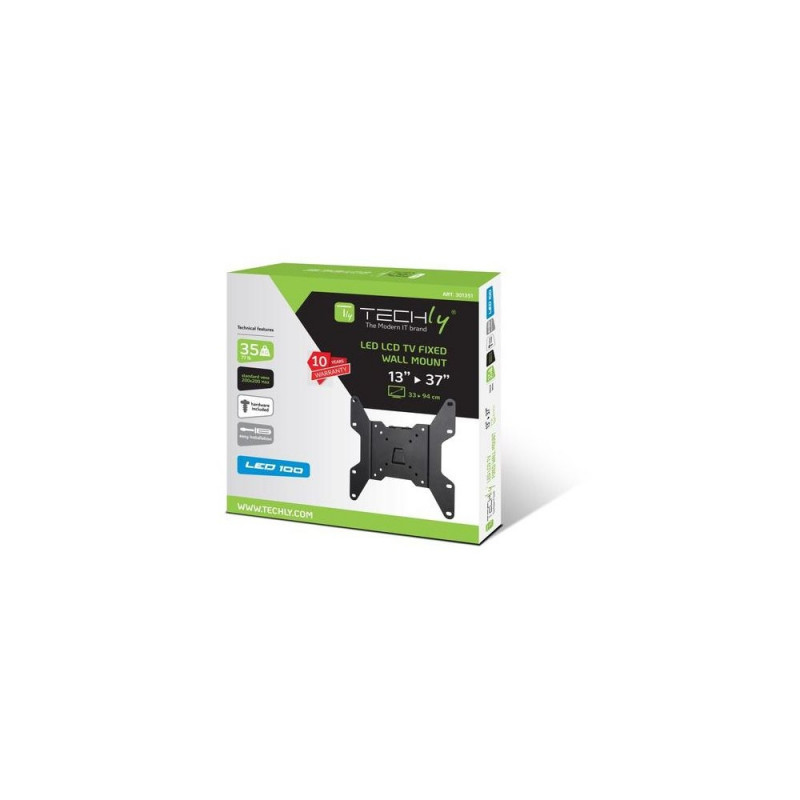 <br />Techly 13-37" Wall Bracket for LED LCD TV Fixed" ICA-LCD 114. Maximum weight capacity: 35 kg, Minimum screen size: 33 cm (13"), Maximum screen size: 94 cm (37"), Minimum VESA mount: 75 x 75 mm, Maximum VESA mount: 200 x 200 mm. Distance to the wall (min): 1.25 cm, Distance to the wall (max): 12.5 cm. Product colour: Black