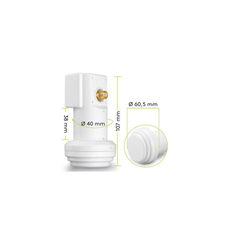 digital SAT LNB (DVB-S2) for 1 participants (8K, 4K, UHD, HDTV, 3D)Goobay Universal Single LNB. RF connector type: F. Feedhorn diameter: 4 cm. Product colour: Grey, White