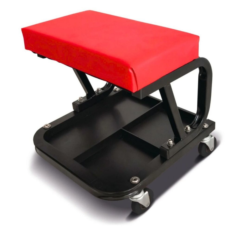 Liikuvus: Neli kummist pöörlevat ratast (kuullaagritega) tagavad sujuva ja lihtsa liikumise töökojas ilma püsti tõusmata.