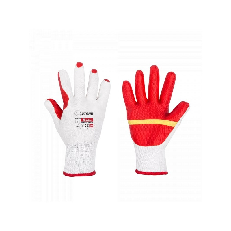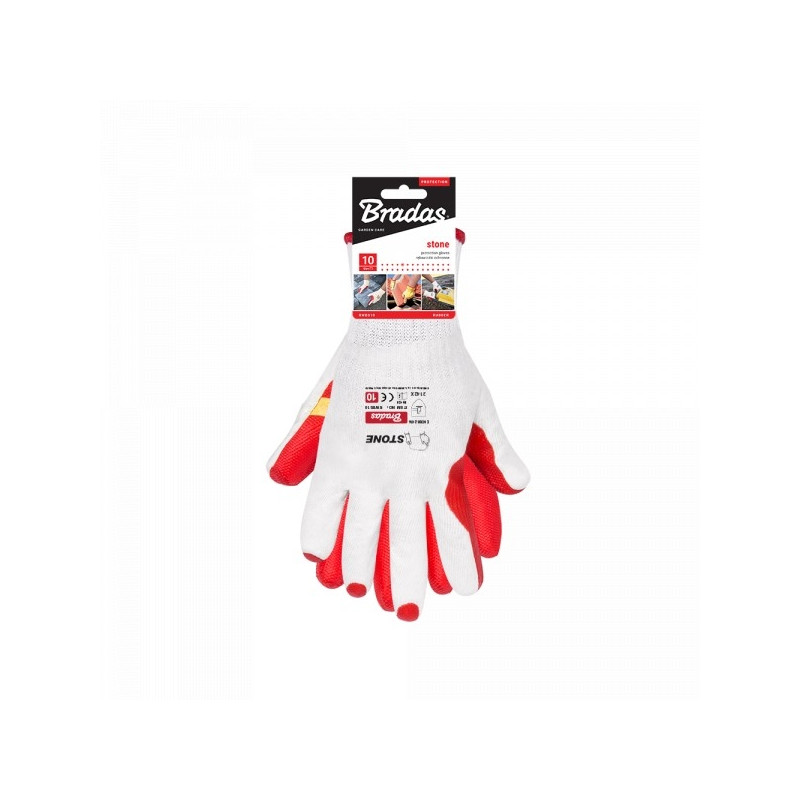Reljeefne kare pind tagab käes olevatele tööriistadele hea haarde. Täielikult kaetud õhukese lateksikihiga vähendab mustuse läbitungimist.