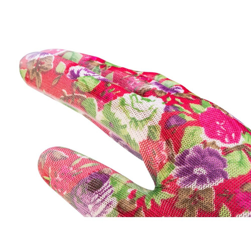 Aiatöökindad PU-kattega, roosimustriga, suurus 8" (5 tk.)
