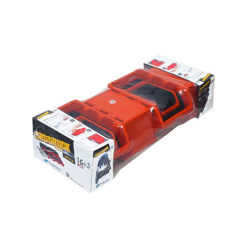 Kõrgekvaliteediline komplekt, mis koosneb 16 kastist neljas erinevas suuruses ja kahes värvitoonis. Lisaks on kaasas 5 liistu, mis on mõeldud kastide seinale kinnitamiseks. Komplekt sobib ideaalselt nii lattu kui ka kodusesse garaaži.