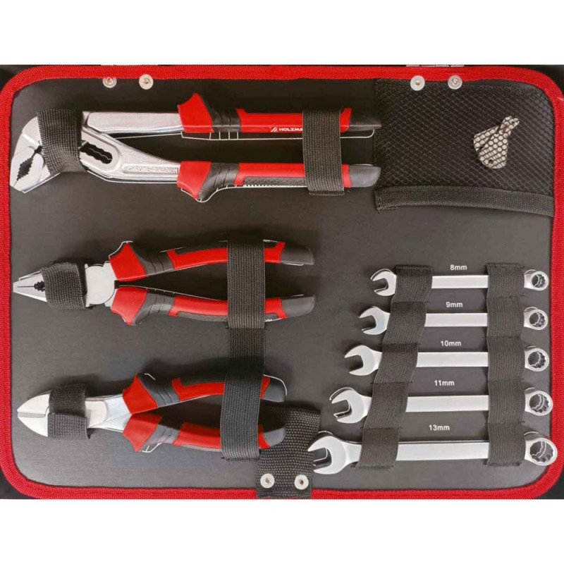 HOLZMANN WZK119ECO tööriistakast sisaldab 119-osalist tööriistakomplekti, mis on selgelt paigutatud nelja sektsiooni ja korralikult hoiustatud kompaktses kandekäepidemega kohvris.