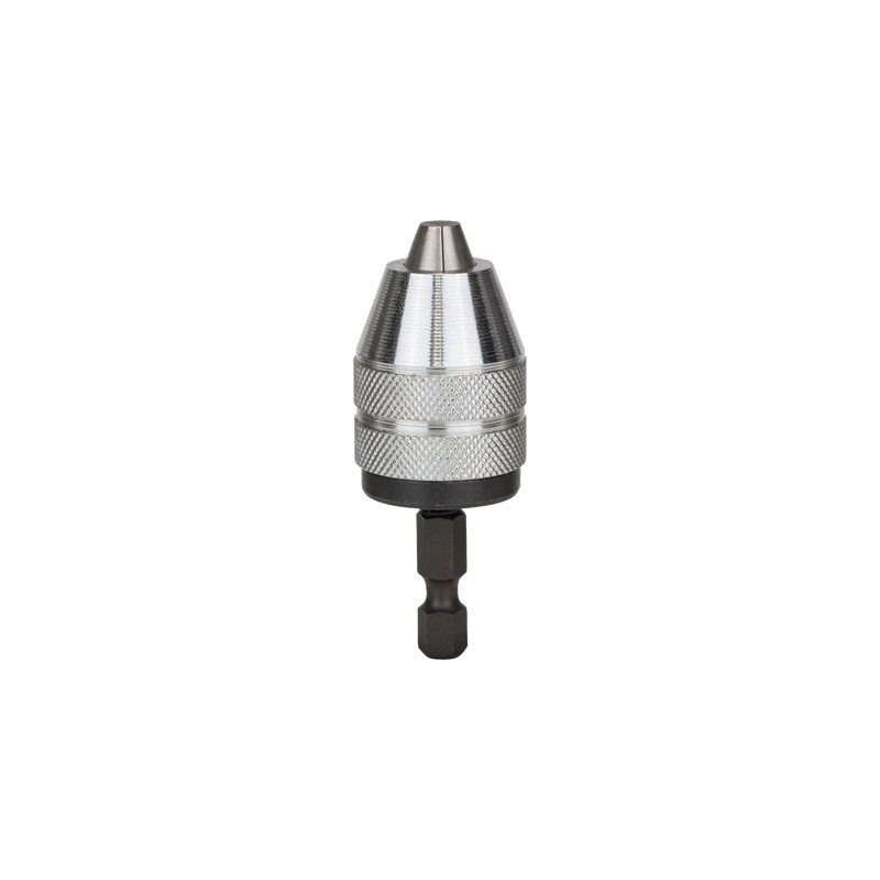 The Keyless Chuck clamps drill bits easily without a key. It is intended for use with cylindrical or hex shank drill bits up to 6-mm diameters. The chuck is compatible with all common drills.Bosch Keyless Chucks. Material: Metal, Product colour: Stainless steel