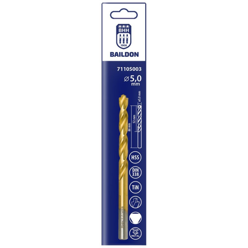 Baildon DIN 338 RN 5 mm HSS TiN metallipuur (5 tk.)