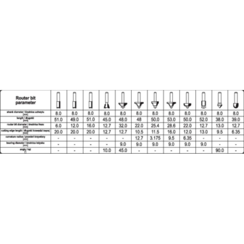 Freesiterade komplekt (12 tk.) YT-68005 YATO