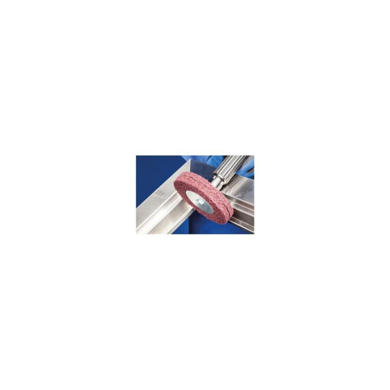 POLINOX discs are suited to flexible work on complicated tool contours, and are used in peripheral grinding applications.<br>Materials that can be worked:<br>Aluminium<br>Cobalt-based alloys<br>Other non-ferrous metals<br>High-temperature-resistant materials<br>Nickel-based alloys (e. g. Inconell and Hasteloy)<br>Bronze<br>Hard non-ferrous metal<br>Titanium<br>Titanium alloys<br>Copper<br>Soft non-ferrous metal<br>Brass<br>Zinc<br>Stainless steel (INOX)<br>Thermoplastics<br>Fibre-reinforced duroplastics (GRP, CRP)<br>Hardened, heat-treated steels over 1,200 N/mm2 (over 38 HRC)<br>Steel materials with a hardness over 54 HRC<br>Steel, cast steel<br>Steels up to 1,200 N/mm² (< 38 HRC)<br>Cast steel<br>Applications:<br>Roughening<br>Deburring<br>Surface work<br>Cleaning<br>Structuring (matt finishing, brush matting and satin finishing)<br>Fine grinding in multiple steps<br>Drive types:<br>Flexible shaft drive<br>Straight grinderPFERD 44693151. Rotational speed (max): 4100 RPM, Hole diameter: 1.3 cm. Wheel diameter: 15 cm, Width: 10 mm, Package weight: 100 g. Quantity per pack: 10 pc(s)