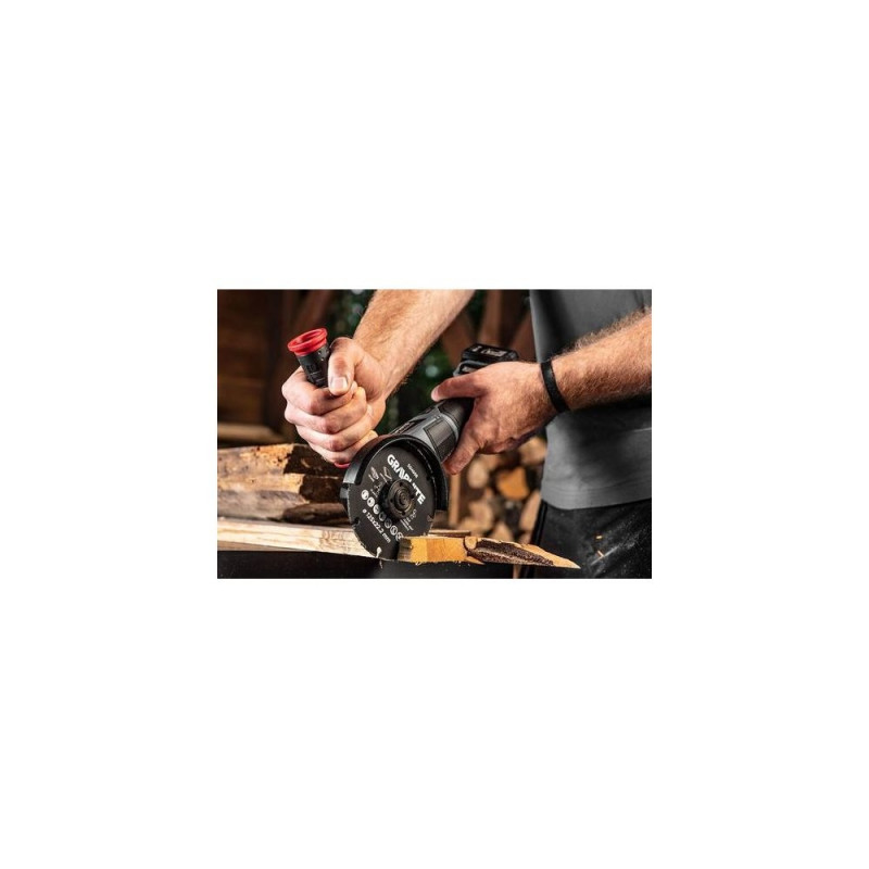 Cutting disc GRAPHITE (no ref. 55H698) outside diameter 125 mm outside diameteand internal 22.2 mm. The edges of the disc are covered with tungsten carbide, thanks to which it is very good at cutting soft materials, including: wood, wooden boards, chOsta kohe, viimased eksemplarid laos!