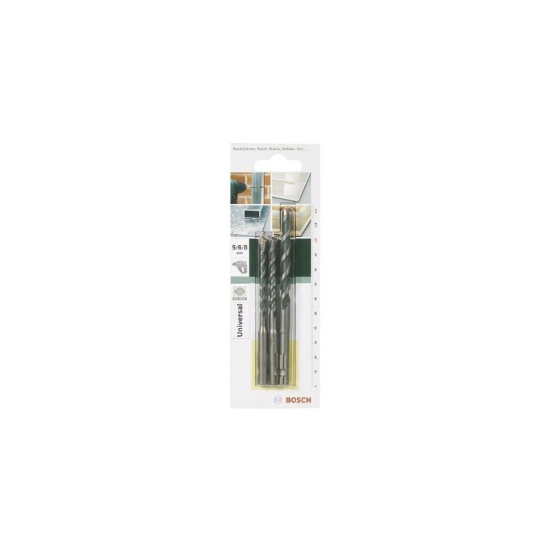 <b>Diameter mm x length mm</b><br>- 5.0x100<br>- 6.0x100<br>- 8.0x120Bosch SDS-Quick Multi-purpose Drill Bits Set, 3pcs. Proper use: Rotary hammer, Drill bit type: Drill bit set, Suitable for materials: Multi. Number of drill bits: 3 pc(s)