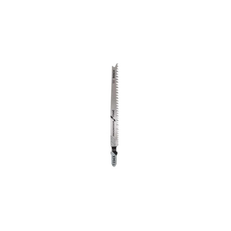 <br />Bosch T234X. Product type: Jigsaw blade, Suitable for materials: Wood, Blade material: High carbon steel (HCS). Working length: 9.3 cm, Number of Teeth Per Inch (TPI): 8 - 13, Blade tooth spacing (min): 2 mm. Overall length: 11.6 cm. QuanOsta kohe, viimased eksemplarid laos!
