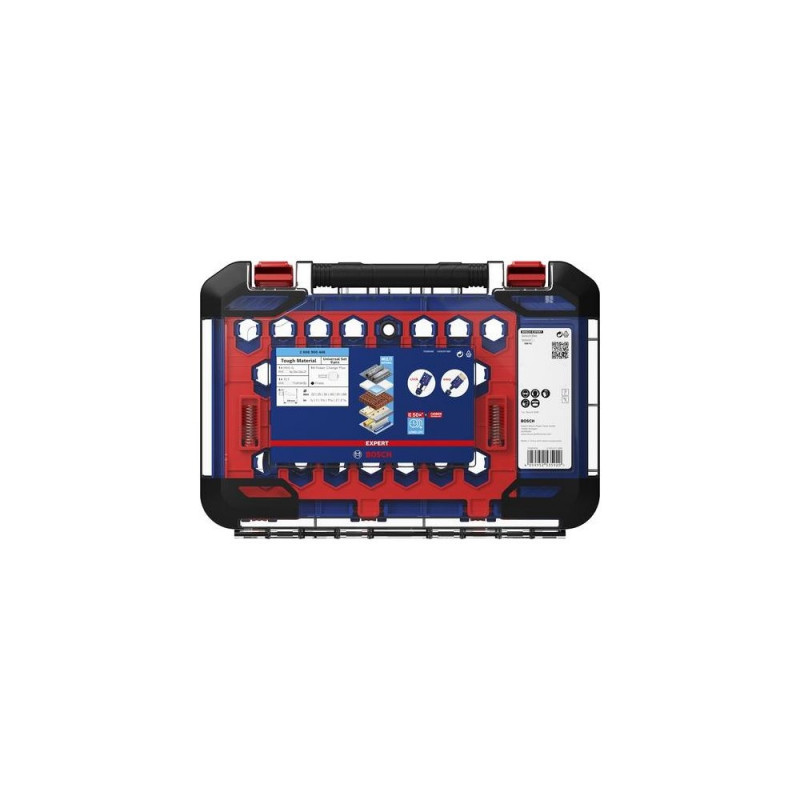 <b>EXPERT TOUGH MATERIAL FOR LONG LIFE CUTTING HOLES IN MULTI MATERIAL</b>Most hole saws for wood and metal seem to work fine - until you hit a hardened nail or screw. Then they scream and smoke and grind until their teeth are torn off, and you still only have half a hole. With its carbide teeth, the EXPERT Tough Material barely slows down when it hits metal – it cuts neatly through and keeps on cutting holes, time and again.The Bosch EXPERT Tough Material Hole Saw great all-rounder for every tradesman – because half a hole is not even worth half a hole.Bosch 2 608 900 447. Type: Set, Suitable for: Drill, Suitable for materials: Brick, Plastic, Soft ceramic wall tile, Stainless steel, Wood. Diameter: 7.6 cm. Number of pieces: 14 pc(s), Number of hole saws: 11 pc(s), Number of adapters included: 1 pc(s)