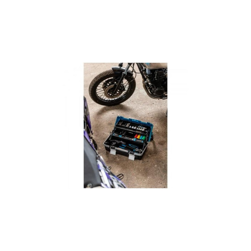 Two removable boxes for small parts in the inside of the lidHAZET 190L-2. Product type: Tool box, Material: Plastic, Product colour: Black, Blue. Width: 250 mm, Depth: 470 mm, Height: 215 mm. Quantity per pack: 1 pc(s)Toode on arhiivis, kuvatakse vaid informatiivsel eesmärgil.