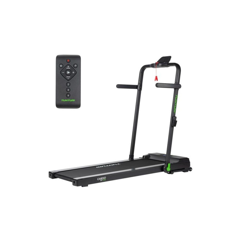 Tunturi Cardio Fit T10 jooksulindi eelised ✔ Väga kompaktne: saab hoiustada kapi taga või voodi all ✔ 7 treeningprogrammi treeningu vaheldusrikkuseks ✔ Kasutajasõbralik kaugjuhtimispult täielikuks kontrolliks ✔ Vaikne mootor kõndimiseks või jooksmiseks kuni 12 km/h ✔ Praktiline tahvelarvuti ja nutitelefoni hoidik
